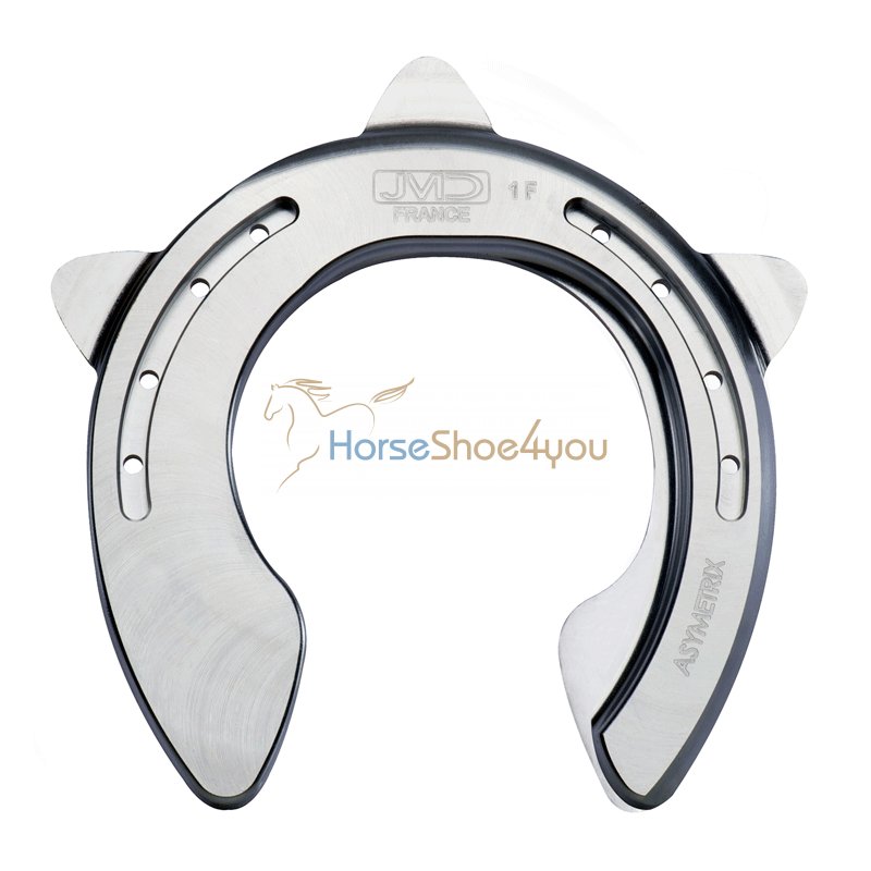 Eisen mit verschieden breiten Schenkeln: Ein breiter Schenkel mit weiterer Verbreiterung am Trachtenende. Ein schmaler und ausgenommener Schenkel. Hergestellt aus High-Tech Aluminiumlegierung. Nicht gehärtete Variante: Kann risikolos bis 450° C heiß bearbeitet werden. 3 Kappen für eine wahlweise Verwendung mit einer Zehenkappe oder zwei Seitenkappen. Dicke 10 mm. Breite und Gewicht bei Größe 1: 38 mm am verbreiterten Trachenende. 30 bis 27 mm am breiteren Schenkel, 27 mm an der Zehe. Schmaler und ausgenommener Schenkel: 25 mm auf der Hufseite und 15 mm auf der Bodenseite. 204 g.